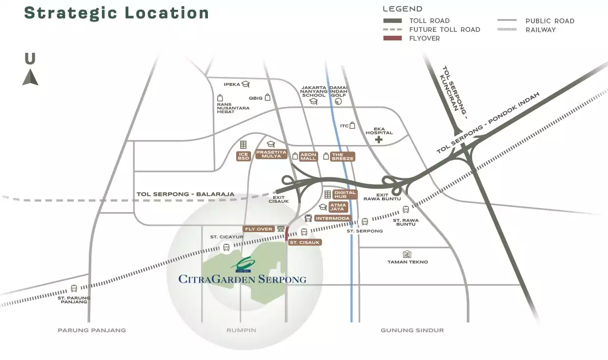 Cluster Elaia Ultimate berada di dalam Kawasan Citra Garden Serpong, hanya 2 menit ke Stasiun & 5 menit ke AEON Mall BSD.